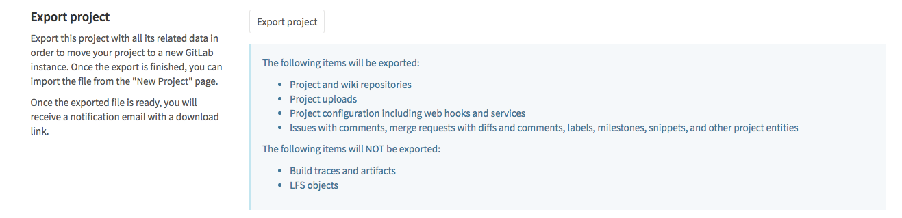 /admin/application_settings) under 'Import sources'. Ask your administrator if you don't see the GitLab export button when creating a new project.- Starting with GitLab 10.0, administrators can disable the project export option on the GitLab instance in application settings (